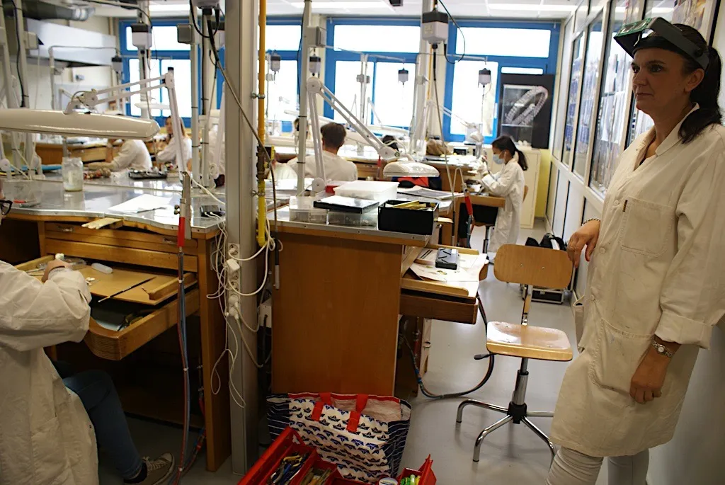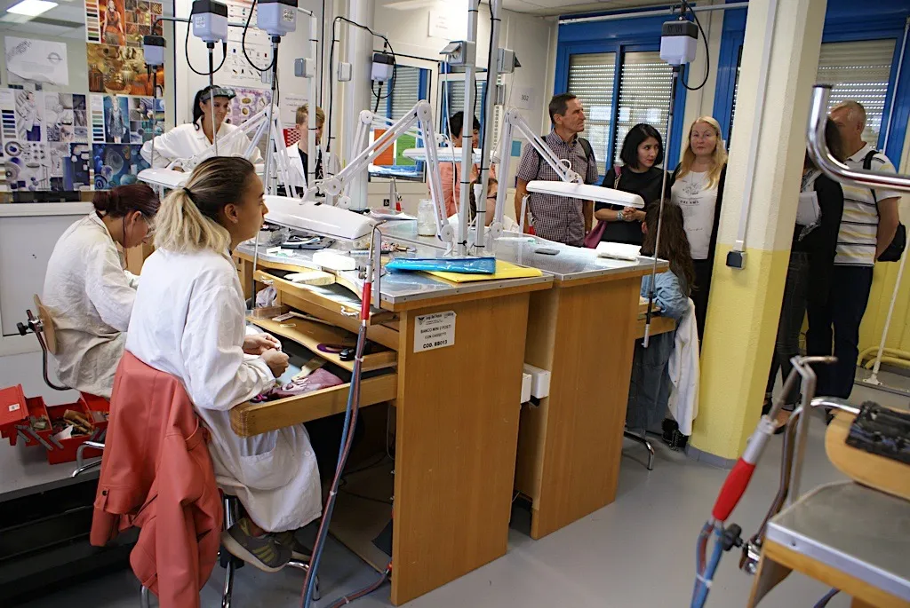 Στα πλαίσια της συνάντησης έγινε μία επίσκεψη στους εργαστηριακούς χώρους των τμημάτων αργυροχρυσοχοΐας και ωρολογοποιίας του Επαγγελματικού Λυκείου "Παστέρ" της Νίκαιας, όπου μεγάλο ενδιαφέρον είχε η πληροφόρηση και ανταλλαγή απόψεων με το εκπαιδευτικό προσωπικό πάνω στα προγράμματα κατάρτισης των σπουδαστών.