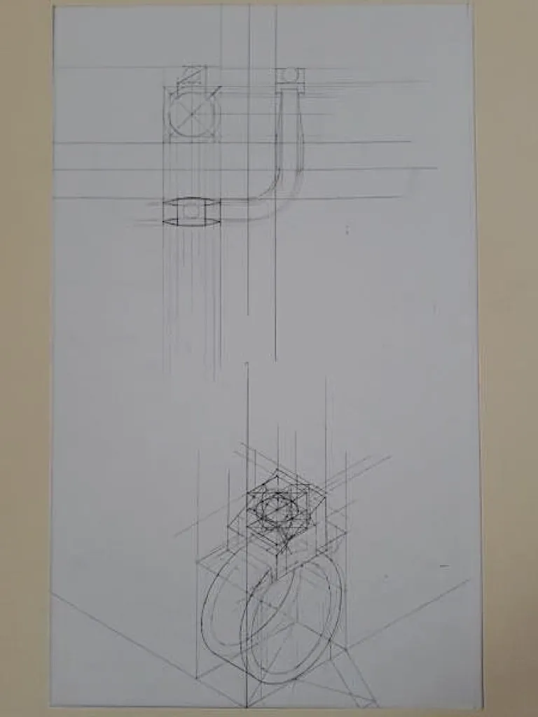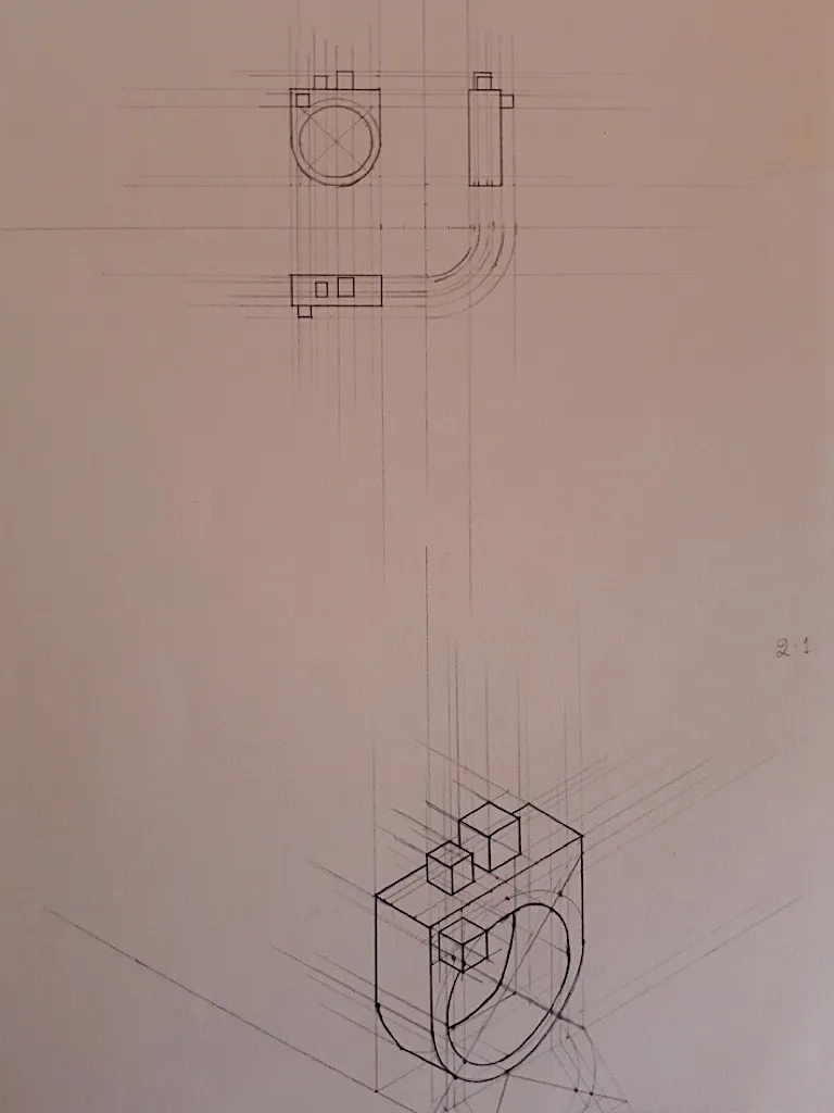 Κατόψεις και όψεις γεωμετρικών αντικειμένων και κοσμημάτων αποδίδονται στις πραγματικές τους διαστάσεις και είναι η βάση για τον σχεδιασμό του ογκομετρικού-αξονομετρικού σχεδίου.